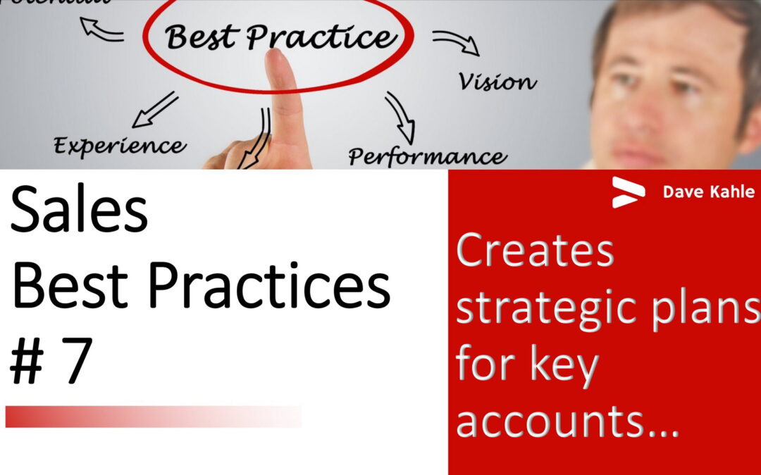 The best salespeople spend time annually reviewing and refining their list of key accounts. They then spend time either quarterly or monthly defining, in writing, their strategic plans for those accounts. The resulting document helps them to effectively focus their investment of sales time in those actions which will get the best results.