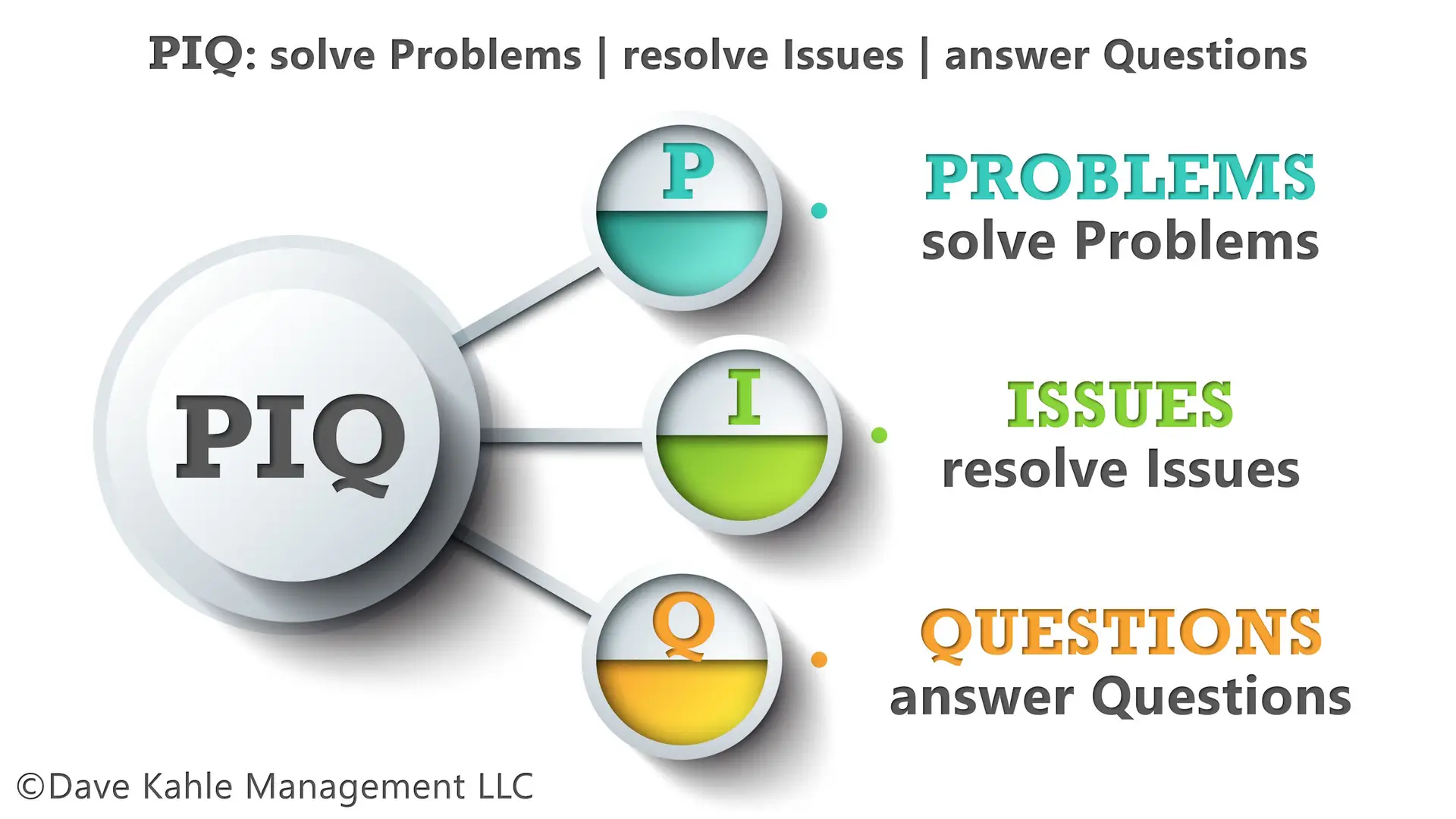 Each PIQ Solution begins with a statement of a Problem, an Issue or a Question.  It then provides a curated description of content which provides you a solution — links to slide decks, podcasts, videos, blog posts, exercises, and worksheets providing a solution to that PIQ.