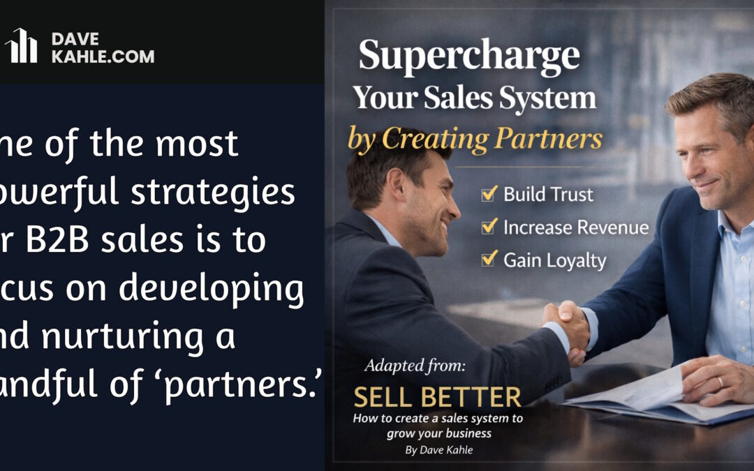 One of the most powerful strategies for B2B sales organizations is to intentionally and methodically develop and nurture a handful of ‘partners.’ These are customers who are so committed to you that they form the foundation of your revenue. Let’s unpack this.