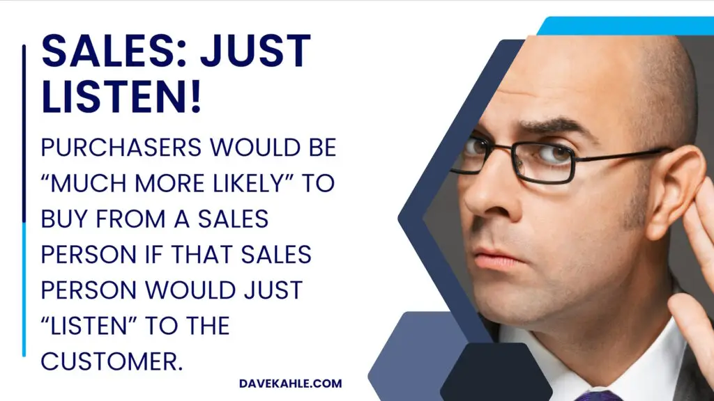 Listening is one of the four fundamental competencies of a professional sales person, and yet, the profession is, in general, so poor at it that most customers remark on our inability to do it well...