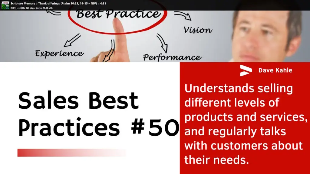 Understands selling different levels of products and services, and regularly talks with customers about their needs – Best Practice #50