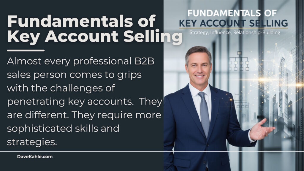 by Dave Kahle             Almost every professional B2B sales person comes to grips with one of the challenges of penetrating key accounts.  Key accounts are different than the ordinary, and require some more sophisticated skills and strategies.  Here are four...