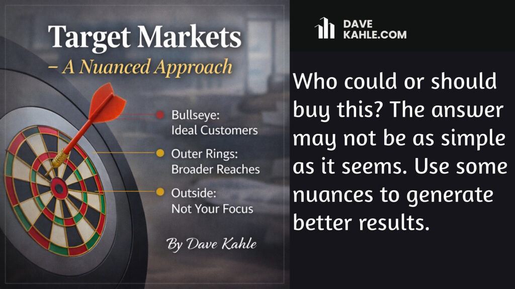 Who could or should buy this? That’s one of key decisions a businessperson makes when initiating a new effort or new product. The answer may not be as simple as it seems. Use some nuances to sharpen your sales...