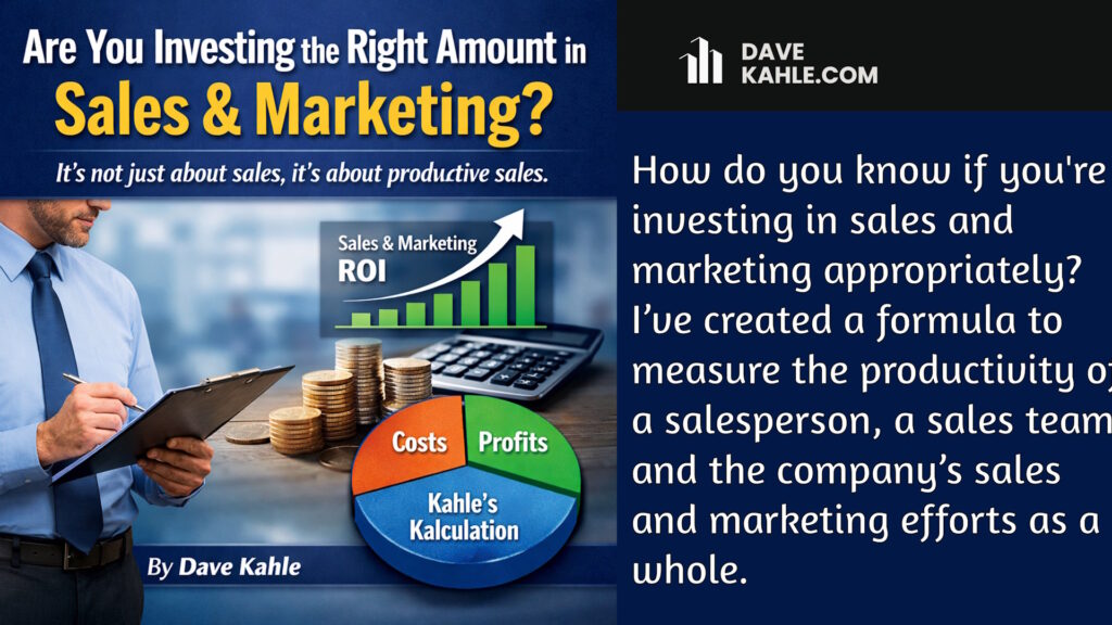 How do you know if you are investing in sales and marketing appropriately? Because of my work with sales forces and sales systems, I’ve created a formula to measure the productivity of a salesperson, a sales team, and the...