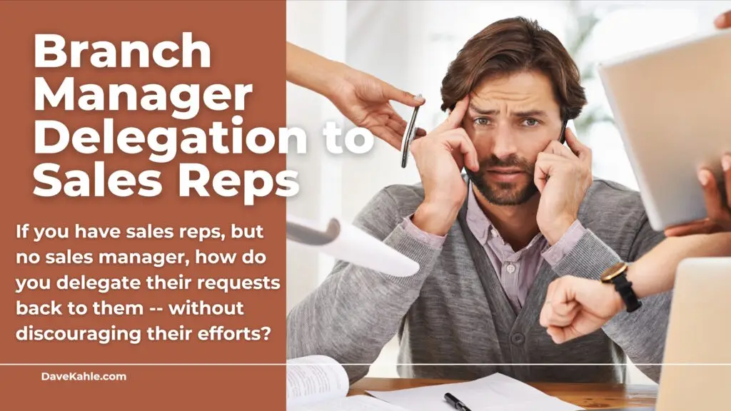 Q.  Being a branch manager and having six reps and no sales manager, how do you delegate some of their requests back to them without discouraging their efforts?            A.  Begin with clear expectations.  What you expect...
