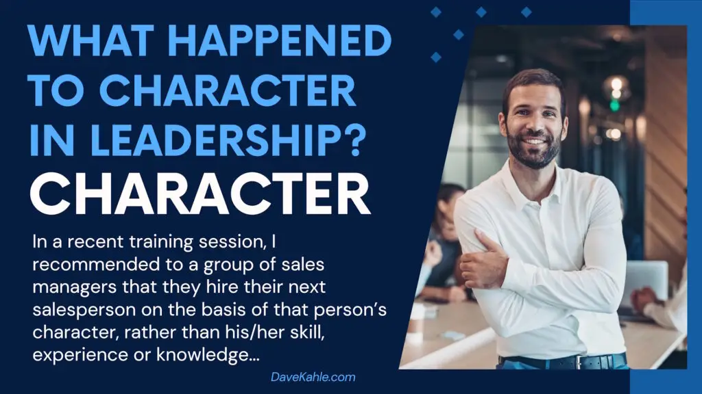 In a recent training session, I recommended to a group of sales managers that they hire their next salesperson on the basis of that person’s character, rather than his/her skill, experience or knowledge.           A couple...
