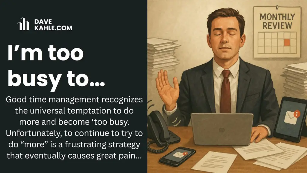 How many times have you said that?  It’s a very common response to almost every request.  Unthinkingly, rather than think about the request, we default to blaming our busy schedule. I can understand.  You are not alone.  Almost every businessperson...