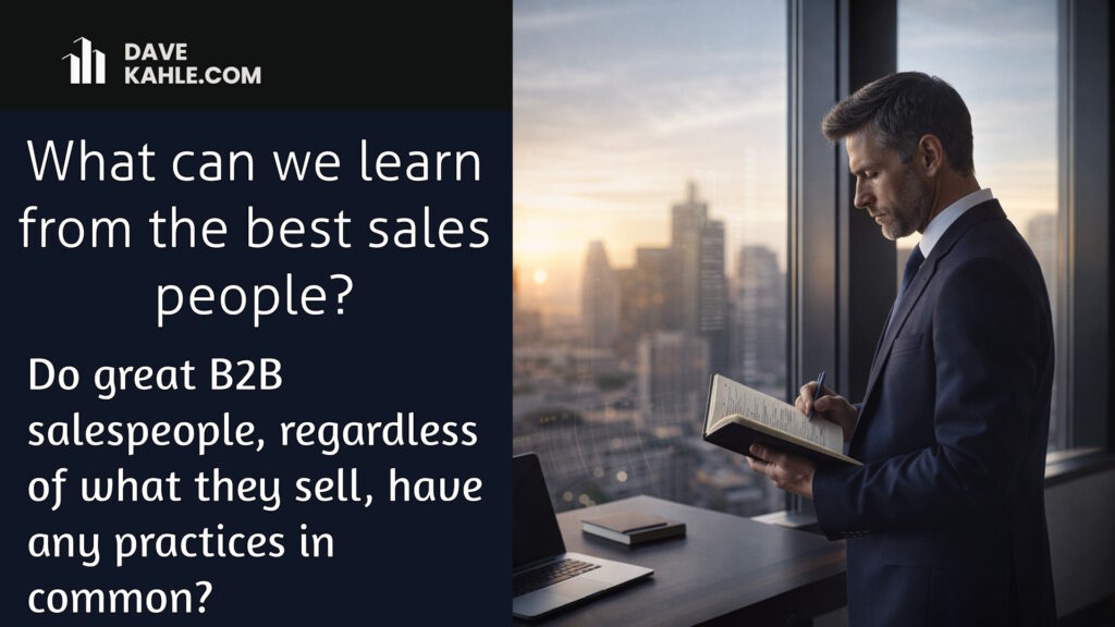 Do great B2B sales people, regardless of what they sell, have any practices in common?  In other words, do the best sales people all sell the same way?  Are there best practices in sales? A number of years ago, a...